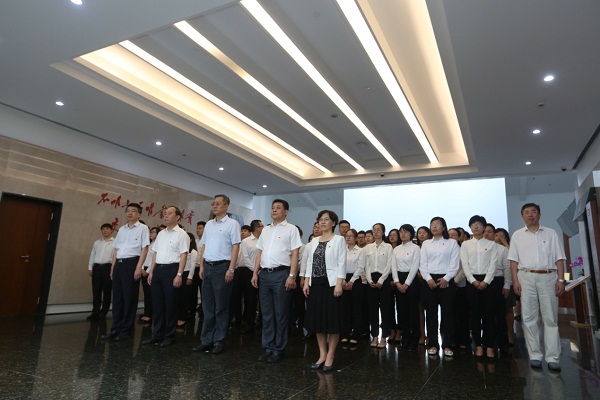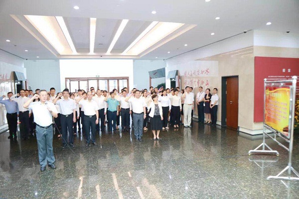 隨后,王旭同志帶領下,全體同志在黨旗和陳云塑像前莊嚴宣誓,重溫入黨誓詞,錘煉黨性修養,堅定理想信念,堅持牢記初心、不忘使命,砥礪奮進。